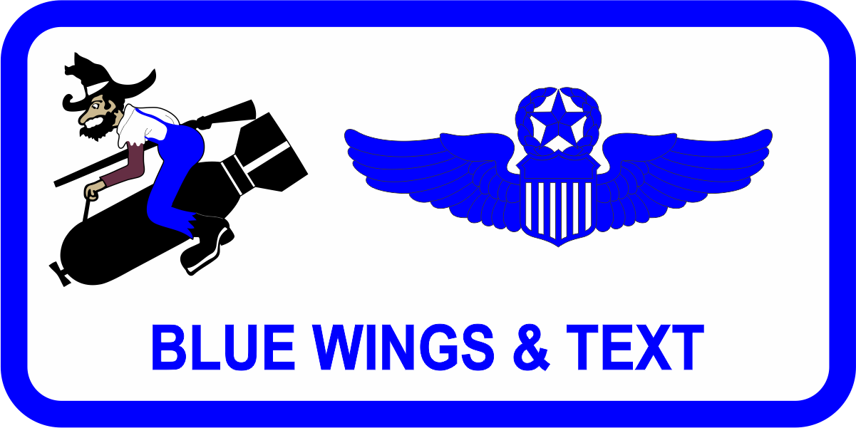 Altus AFB 730 AMTS Name Tag - White Background, Blue Border, Blue Wing & Text, Dude Riding on a Bomb