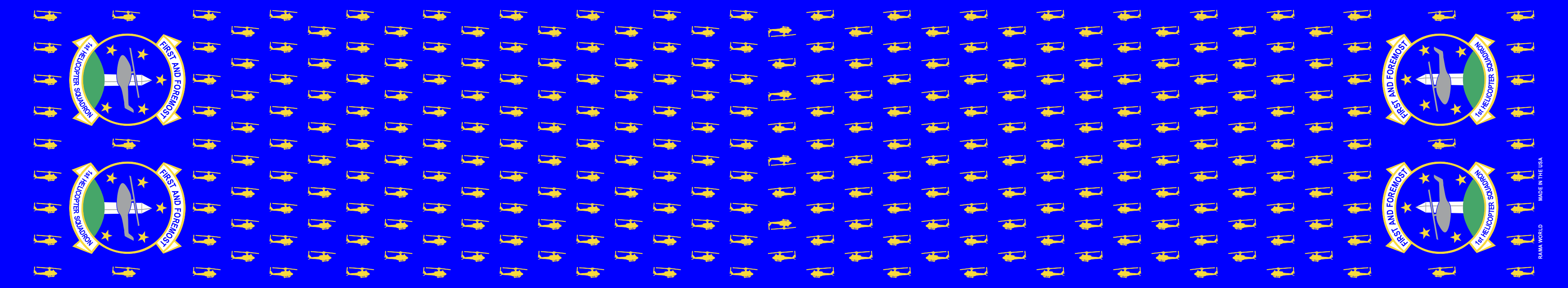 Andrews AFB 1st Helicopter Squadron Scarf - AF blue background with AF yellow UH-1N Huey Helicopters throughout with patch on four ends.