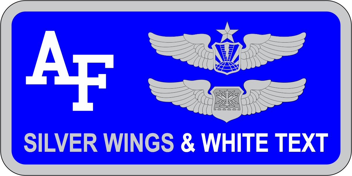 USAF Academy Cadet Wing Staff AF Name Tag- Blue Background Gray Border, Gray Wings & White Text, White AF Academy Logo