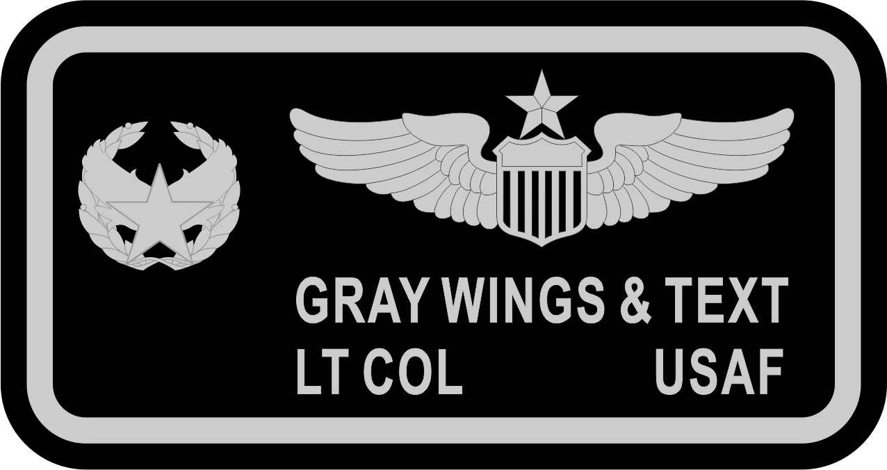Portland ANG 142 OSF Jacket Name Tag - Black Background, Gray Border, Wings & Text, with Leather Backing - Two Lines of Text