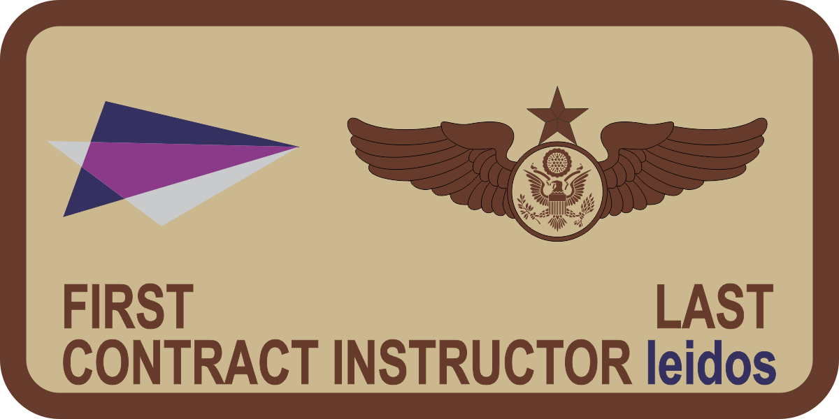 Leidos - Desert Name Tag -- Tan Background, Brown Border, Brown Wings & Text with Leidos Logo