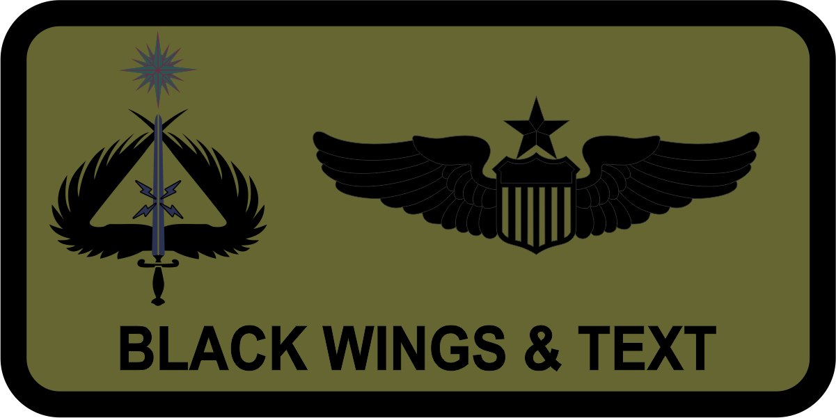 Hurlburt Field 370 SOCTS OD Green Large Name Tag - OD Green Background, Black Border, Black Wings & Text, with Star, Wings, Sword & Bolts Logo