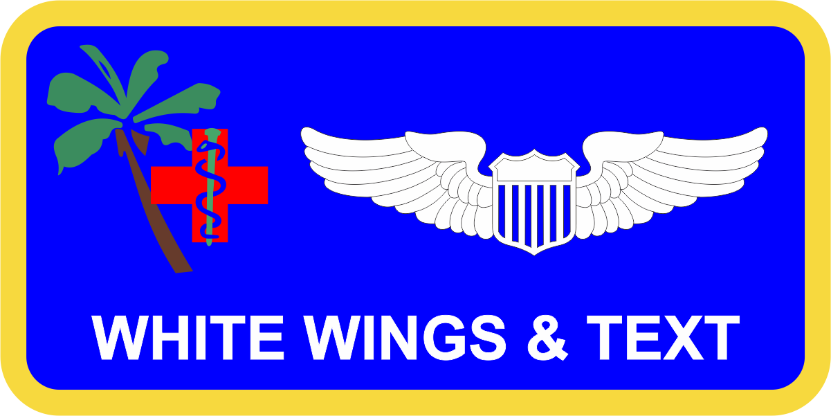 Anderson AFB 36 MDG Name Tag - Blue Background, Yellow Border, White Wing & Text, Green/Brown Palm Tree with Red Cross and Caduceus Logo