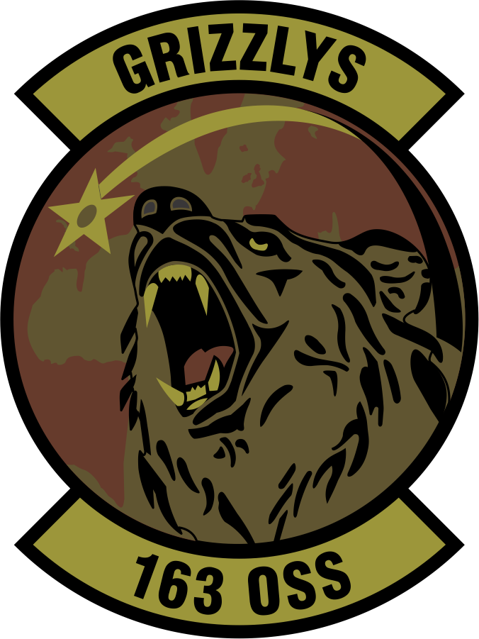 March ARB 163 OSS Grizzlys 163 OSS, Bagby Green Star, Olive Drab Bear, OCP Patch 3" with velcro