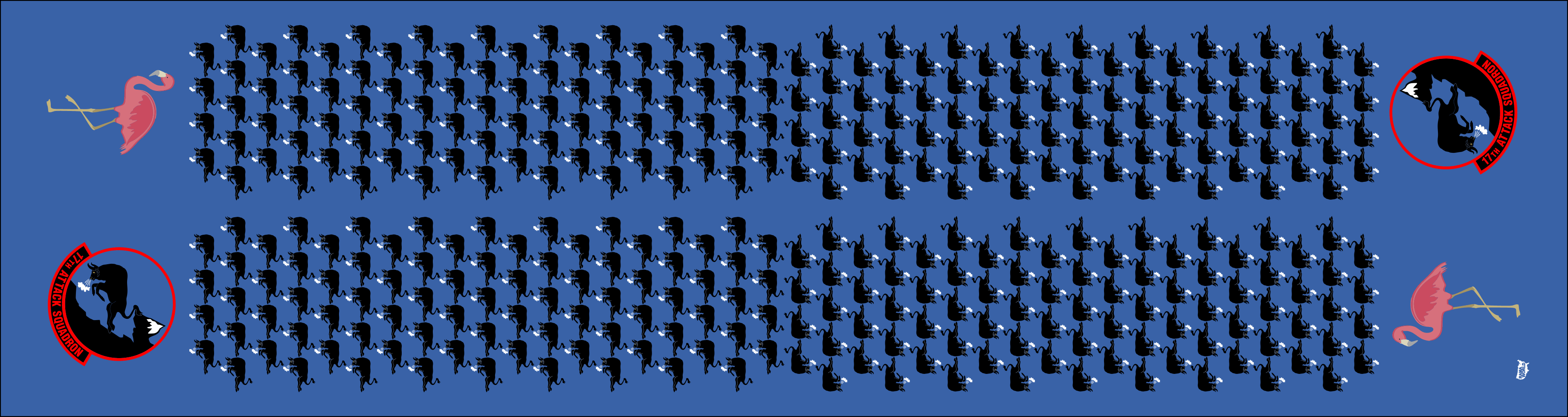 Creech 17 ATKS Scarf - Blue scarf body with snorting bull throughout, flamingo on one end 17 ATKS patch on opposite end. Same design on the front and back of the scarf. size 6" x 48