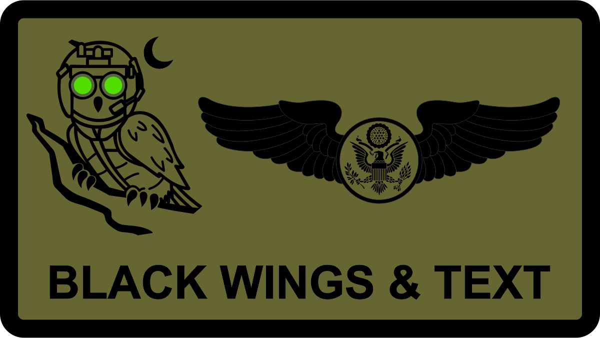 Pennsylvania ANG 193 SOS Owl OD Green Large Name Tag - OD Green Background, Black Border, Black Wings & Text, with OWL Logo, 2.25" x 4"