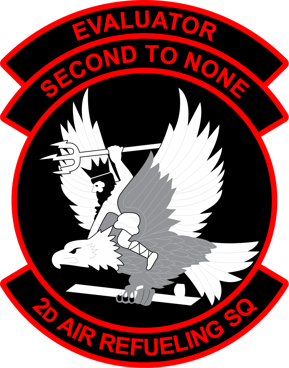 McGuire AFB 2D Air Refueling Sq Black Background, Red Border, White/Black Neptune Riding an Eagle Carrying a Trident, Second To None, EVALUATOR, Full Color Patch 4"
