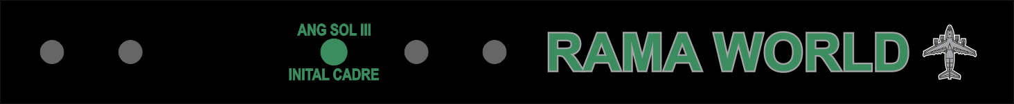 Hickam AFB 204 AS Bag Tag with a Black color background, "ANG SOL III INITIAL CADRE" text inbetween snaps and a "C-17" aircraft (Top view) on the far right. Our standard size measures 13.5" x 1.5" when snapped.
