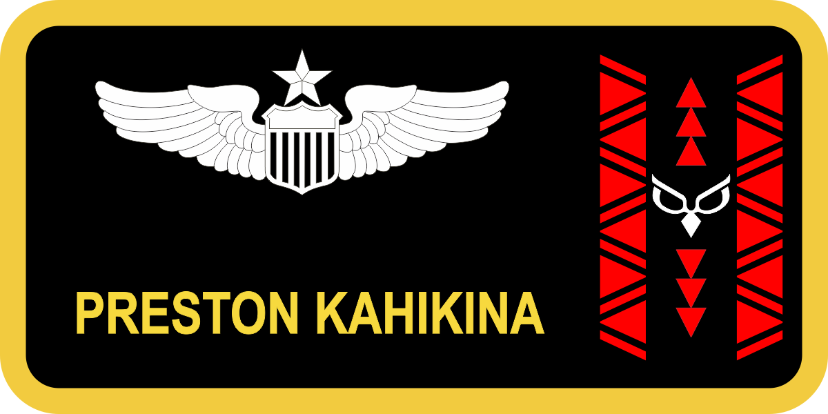 Hickam 204 AS Name Tag - Black background Yellow Border White Wings & Text with Red Logo