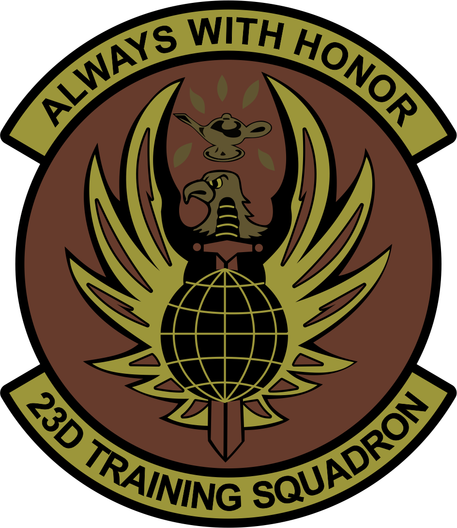 Maxwell AFB 23D Training Squadron Always With Honor Brown Background, Black Border, Eagle with Globe, OCP Patch 3.5"