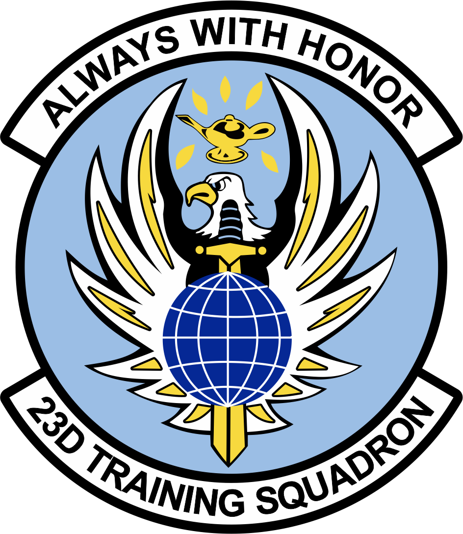 Maxwell AFB 23D Training Squadron Always With Honor Light Blue Background, Black Border, Eagle with Globe, Full Color Patch 3.5"