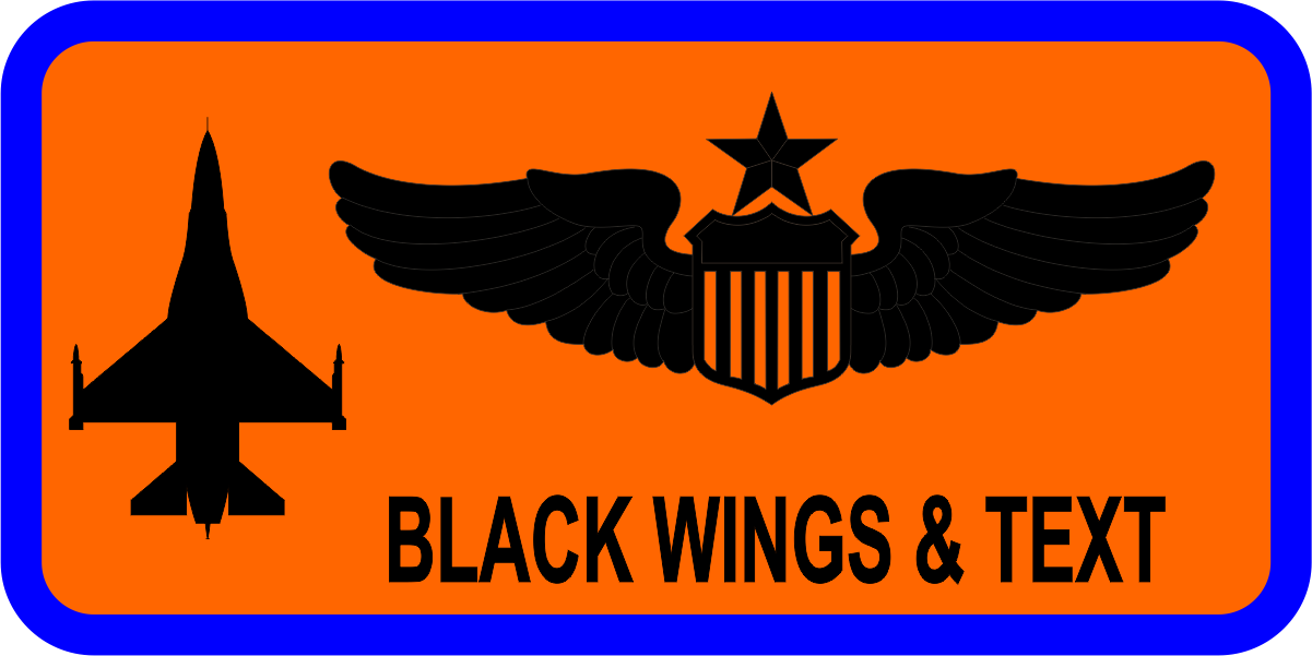 NAS JRB Fort Worth 24th Fighter Squadron Name Tag - Orange Background, AF Blue Border, Black F-16, Black Wing & Text