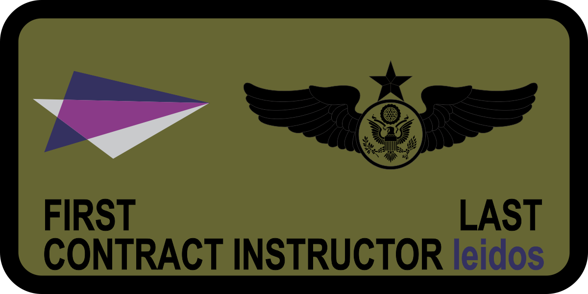 Leidos Name Tag- OD Green Background, Black Border, Black Wings, and Text, Leidos Logo