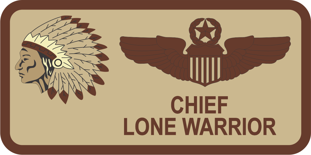Seymour Johnson AFB 335 FS Name Tag - Desert tan background with spice brown border, brown wings and text with an Indian headdress logo