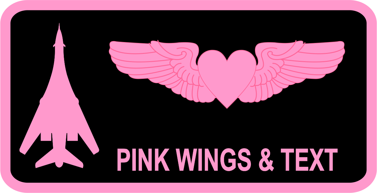34 BS Ellsworth Spouses Pink Name Tag - Black background, pink border, pink sweetheart wings, and text, with a pink B-1B on left side.