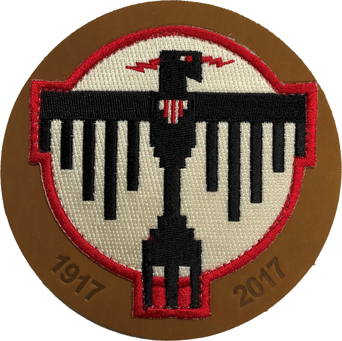 34th BS WWII Patch with Real Leather and Embossed.  3.5" 100% embroidered (+ 1/2" with leather backing size 4")