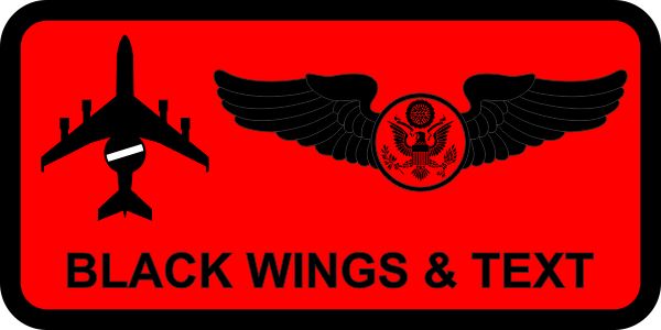 Elmendorf AFB 354 OG- Red background with Black border, Black wings, text and Black E-3 Awacs aircraft