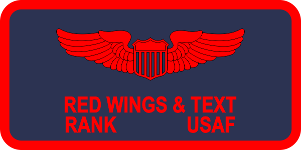 Mountain Home AFB 389 Fighter Squadron Name Tag - 2 Lines of Text- Navy Background with Red Border, Wings & Text