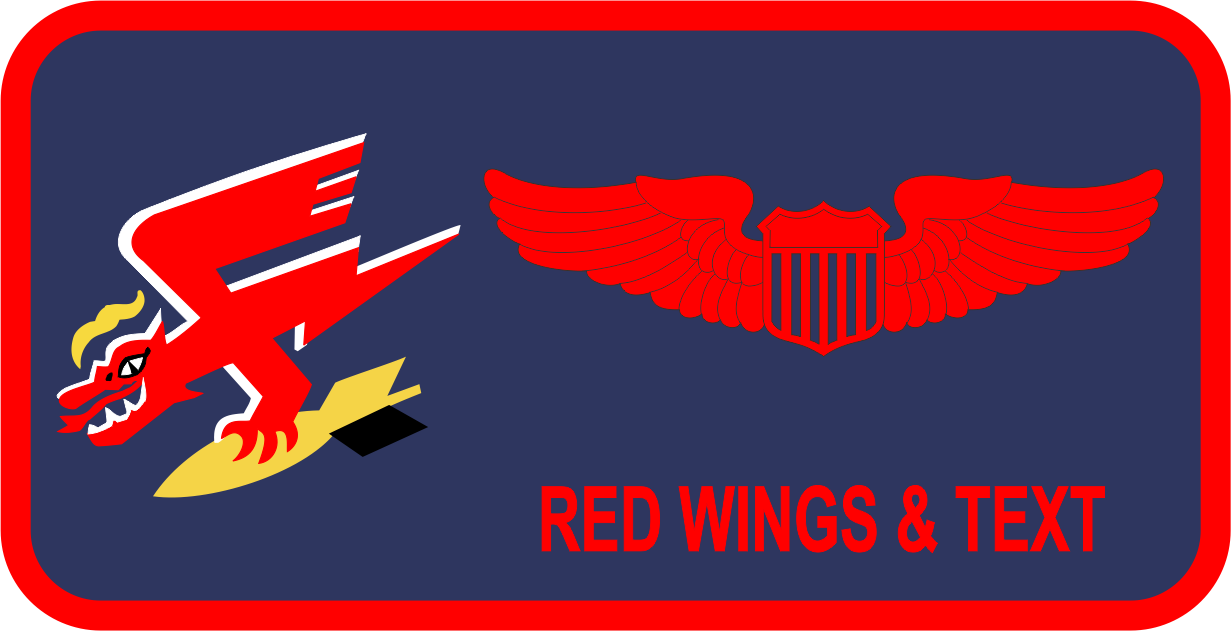 Mountain Home AFB 389 Fighter Squadron Friday Name Tag - Navy Background with Red Border, Wings & Text, with Logo