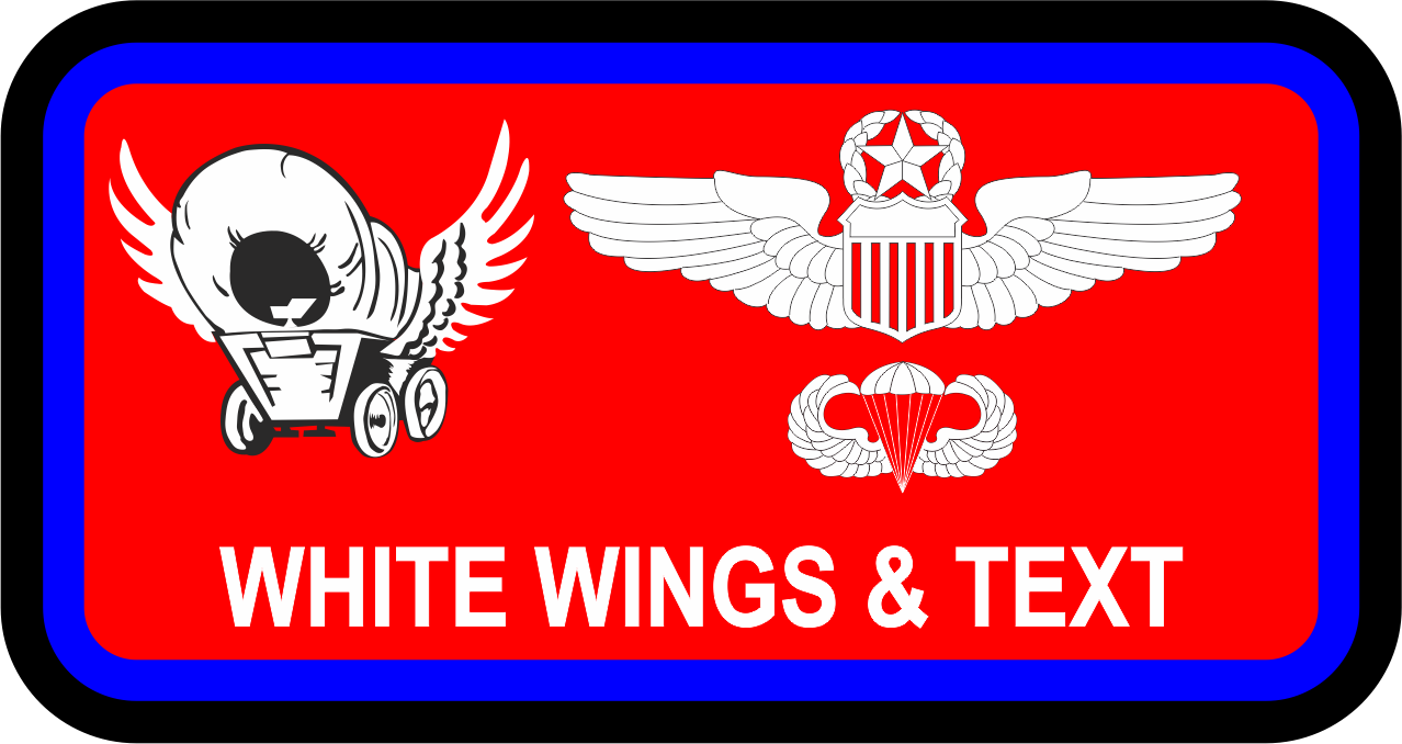 Dyess 39 AS Regular Name Tag, - Red background, AF blue border, white wings and text, white winged coach logo, with leather backing