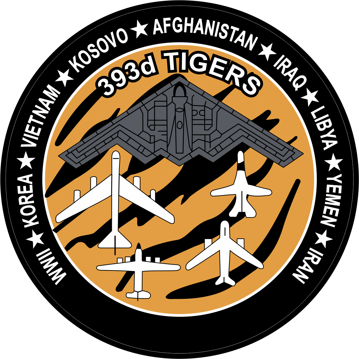 Whiteman AFB 393 Bomb Squadron Heritage Campaign WWII - Korea - Vietnam - Kosovo - Afghanistan - Iraq - Libya - Yemen - Iran, 393d Tigers, B-2, Patch 4"