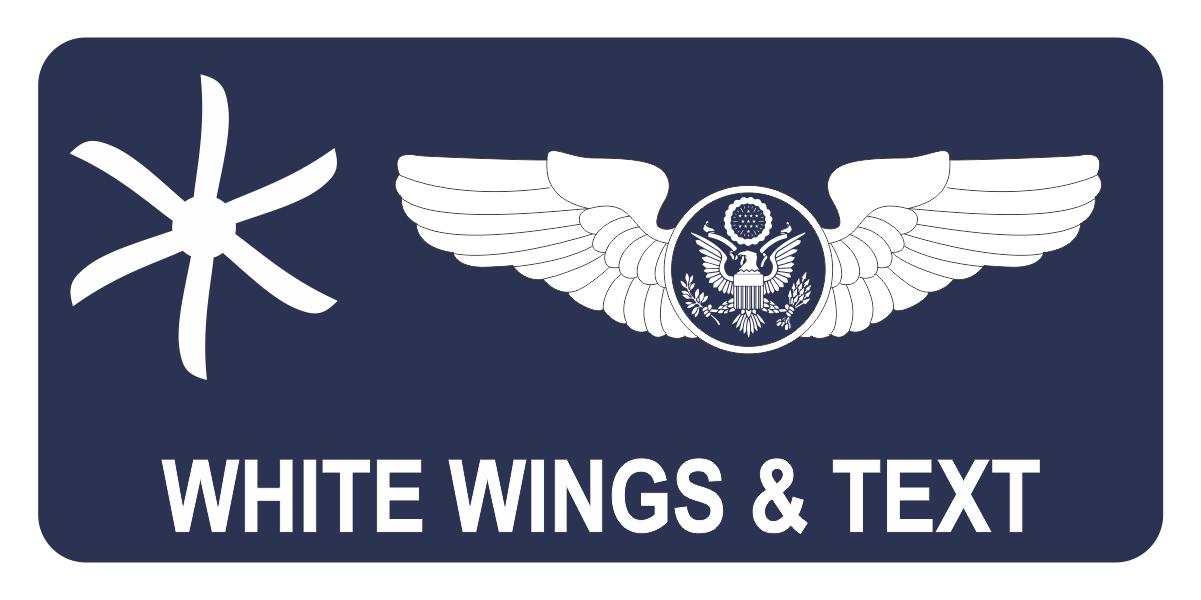 Dyess 40 AS Name Tag: Navy background, white border, wings and text, white prop on the left side - Moral Tag