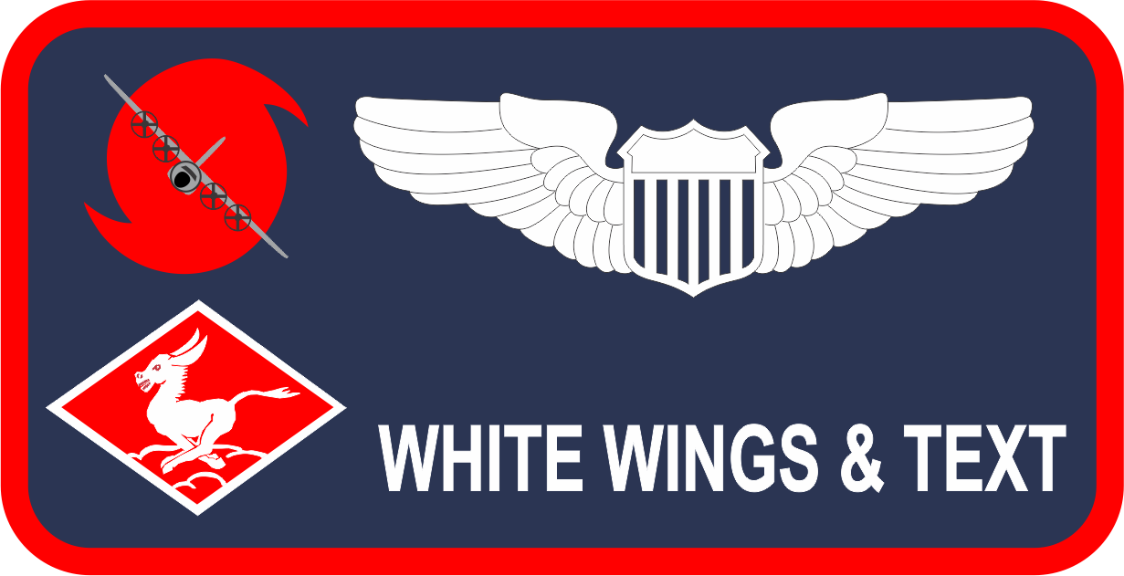TT508 Navy Blue Twill, FF703 Red Merrow, PF800 White WIngs & Text