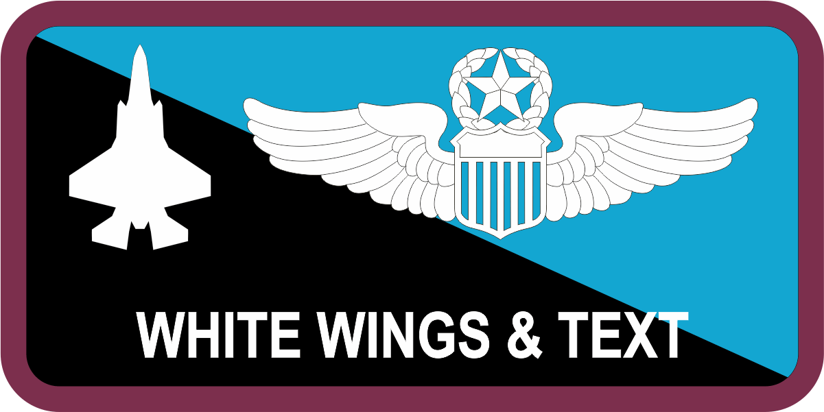 Edwards AFB 412 OG Name Tag - Maroon Border, Lower Half Black Upper Half Medium Blue, with Aircraft, White Wings & Text