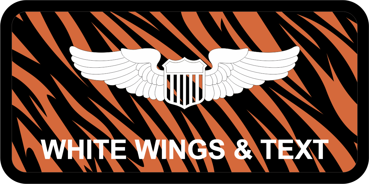 Edwards 418 FLTS Name Tag - Orange & Black Tiger Stripes Background, Black Border, White Wings & Text