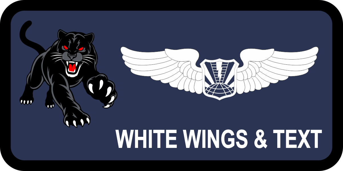 Creech 42 ATKS Name Tag - Navy Blue Background, Black border, White Wings & Text, with Black Panther
