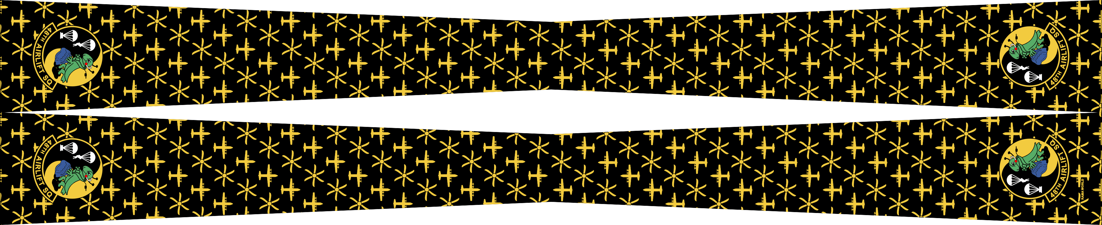 Little Rock AFB 48 AS Flight Scarf - Black body with C-130 and propellers over the body of the scarf, 48 AS patches at each end. Size 4" x 2" x 48"
