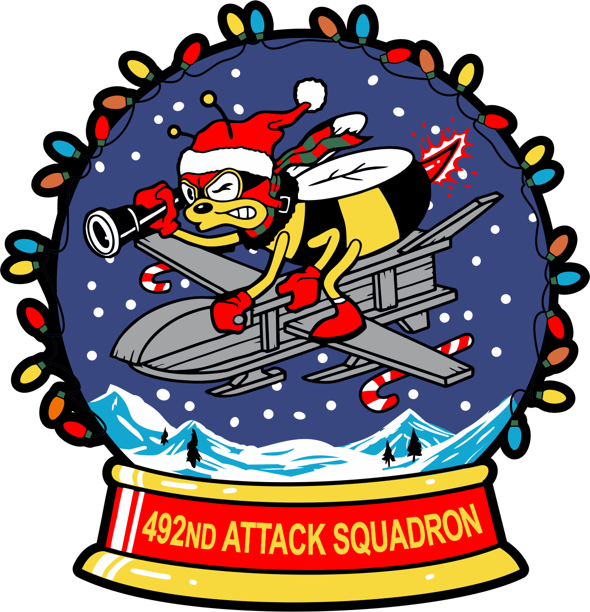 March ARB 492nd Attack Squadron - Christmas Tree with Bee 4", Riding Gray Sled with velcro Full Color Patch 2025