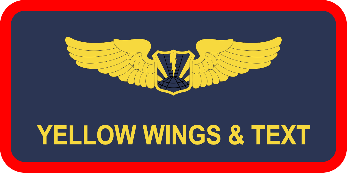 Shaw AFB 50 ATKS Name Tag - Navy Background, Red Border, Yellow Wings & Text