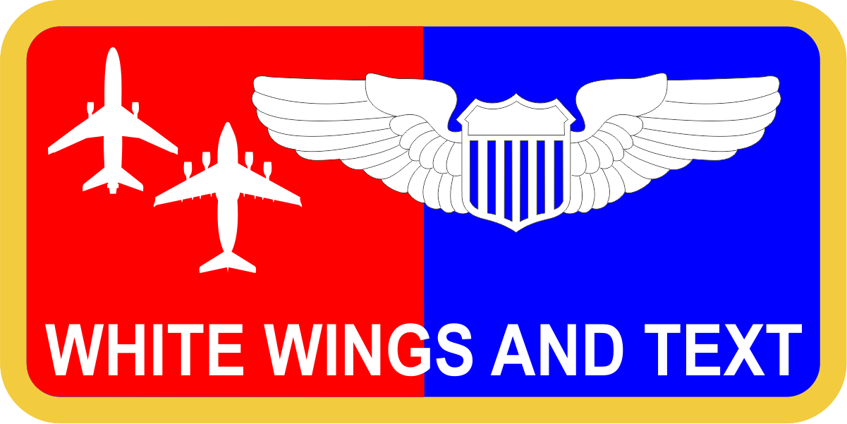 FF703 Red , FF368 blue, FF523 Yellow Merrow, PF800 White Wings & Text -Full embriodered