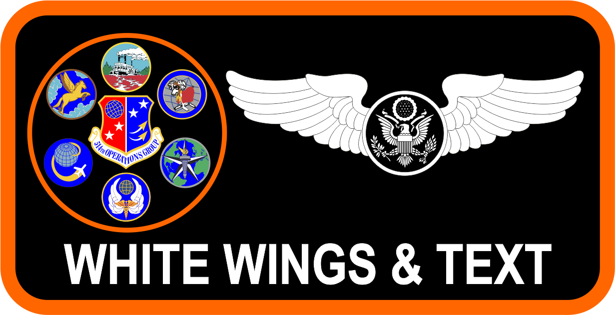 McGuire AFB 514th Operations Group Friday Name Tag - Black Background, Orange Border, White Wings & Text With Full Color Pizza Patch Logo in Left Corner