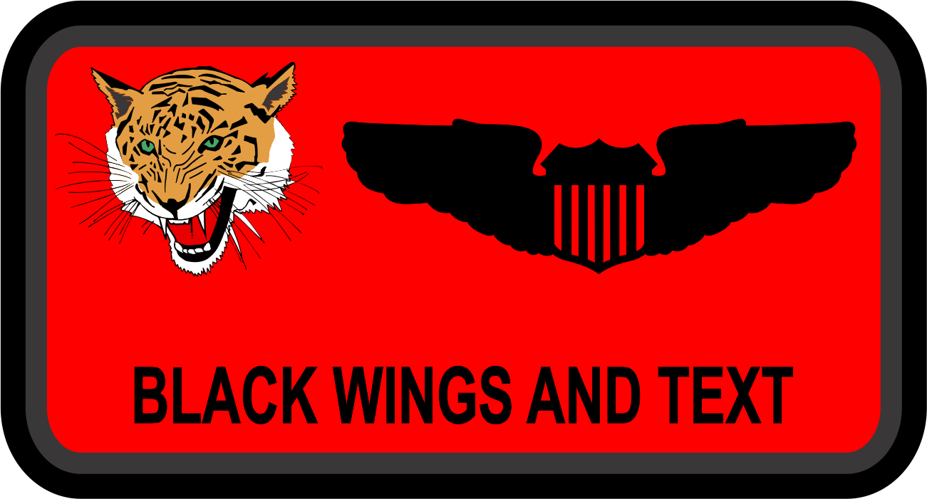 Hickam AFB 535 AS Name Tag - Red background with black border, leather backing, black wings and text with tiger logo