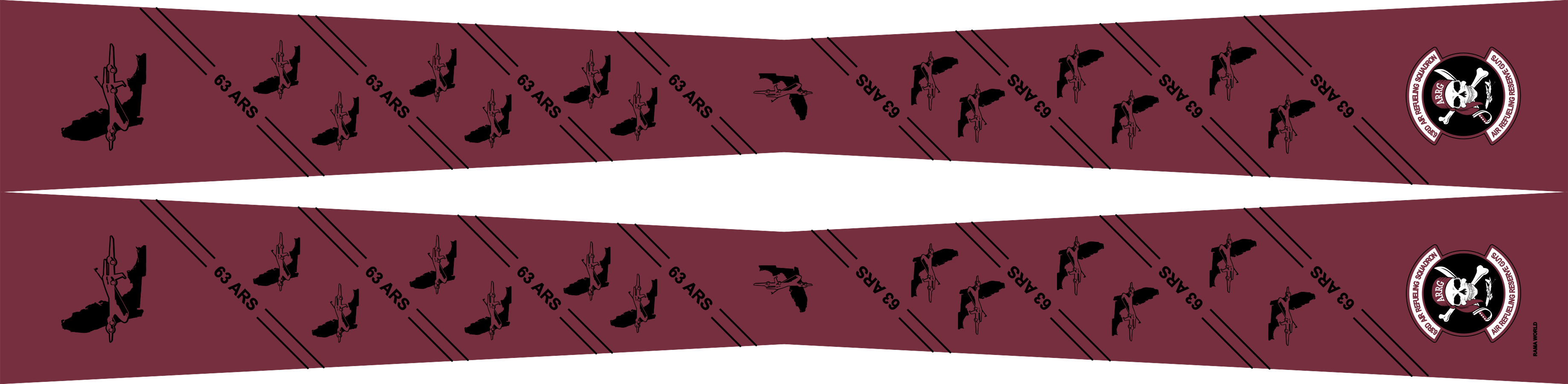 MacDill AFB 63 ARS Maroon Flight Scarf With Black KC-135 and Florida State Outline and "63 ARS" Text Alternating Over the Whole Scarf and 63 ARS Emblem on one End of the Scarf. Size: 5" x 2.5" x 48".