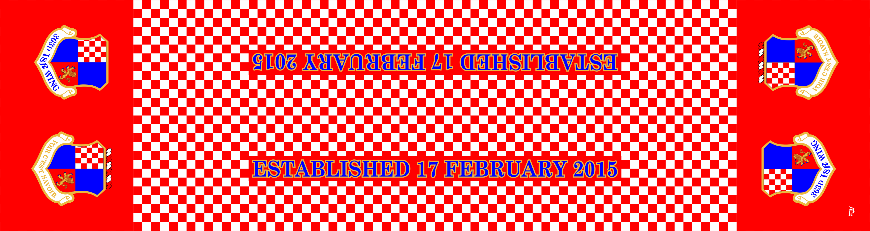 Langley AFB 363 ISR Wing Flight Scarves. Red & White Checkered Background With Patches On The Ends & "Established 17 February 2015" Text In The Center. Size: 6" x 48".