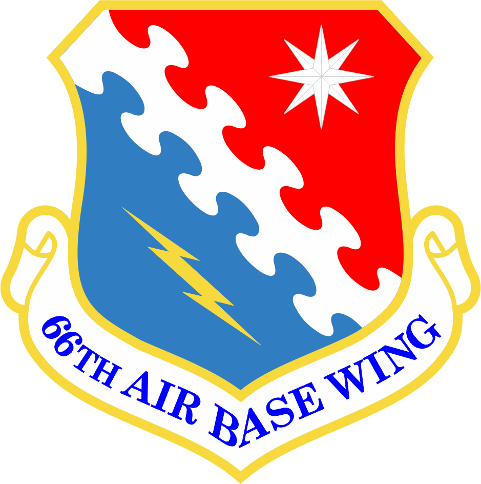 Hanscom AFB 66TH Air Base Wing - Half Blue, Half Red, Yellow Border, White Star, Yellow Bolt, Full Color Patch 3"