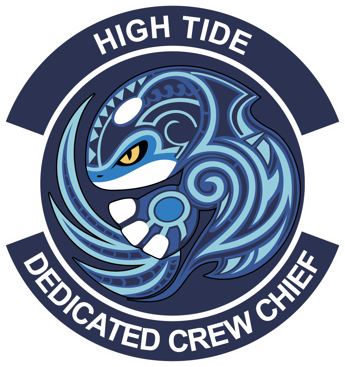 Travis AFB 660 AMXS Light Blue Background, White Border, Stylized Wave, High Tide, Dedicated Crew Chief, Patch 4"