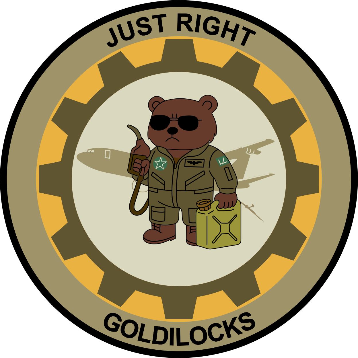 Travis AFB 660 AMXS Khaki Background, Black Border, Green Gear, Bear In Flightsuit, Just Right Goldilocks Text, Patch 4"