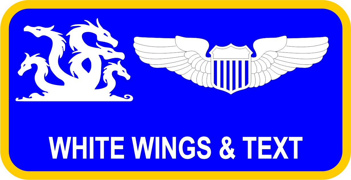 Dyess AFB 7 LRS Name Tag - AF blue background, white wings, and text with a white Hydra logo