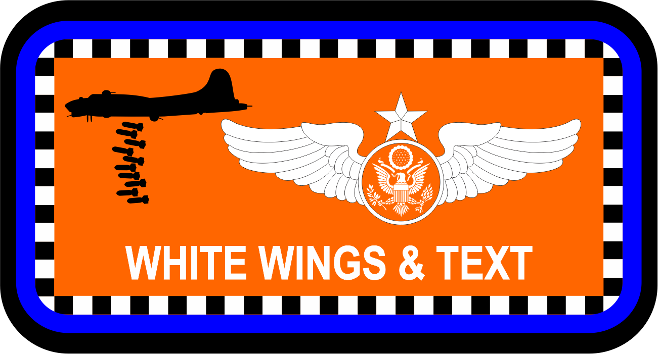 McCord AFB 728 AS Heritage Name Tag - Orange Background, Black/White Checkerboard, AF Blue Border, White WIngs and Text