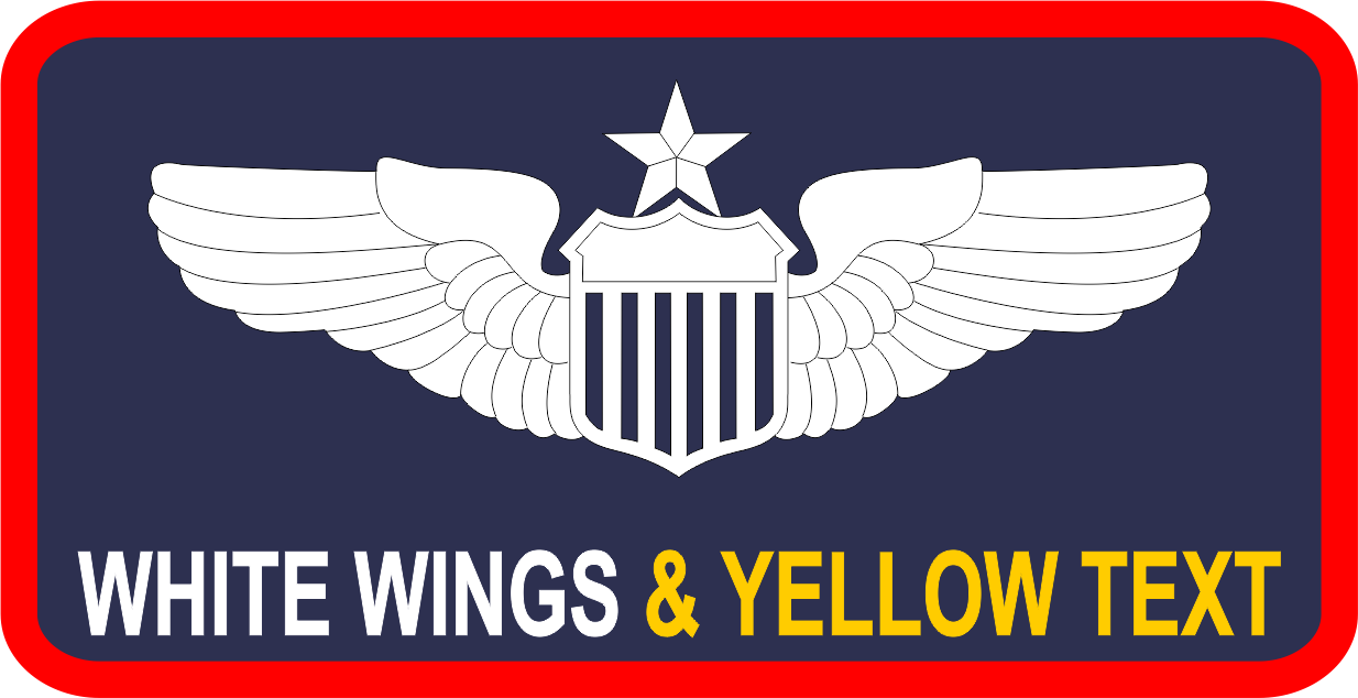77 ARS Seymour Johnson AFB Name Tag: Navy Blue background, Red border, White wings, Yellow text.