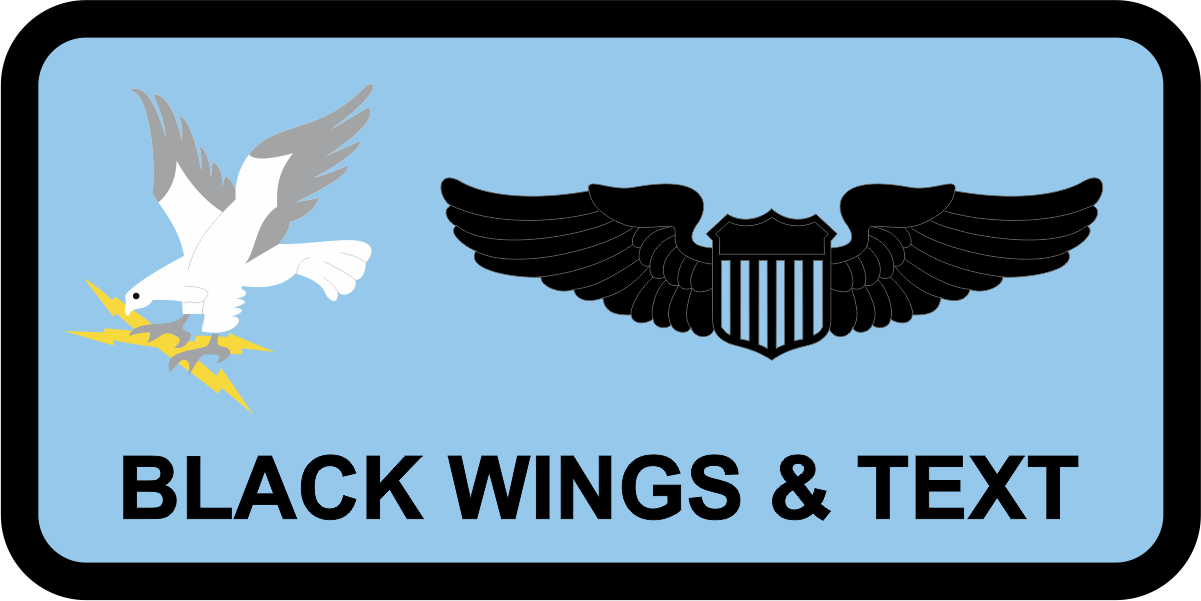 Moody AFB 820 - Heritage Eagle Name Tag Lt Blue Background, Black Border, Black Wings & Text, White/Gray Eagle with Yellow Bolts