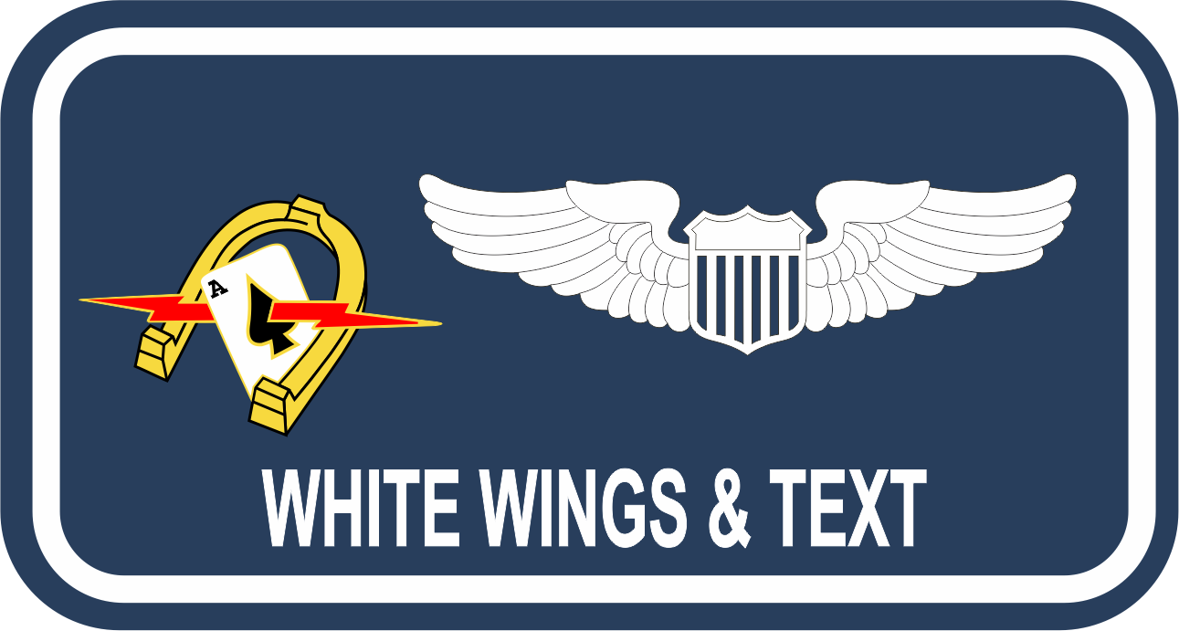 Tyndall AFB 86 FWS Name Tag - Navy Blue Background, White Outline with Navy Border, White Wings & Text, with Horseshoe Logo