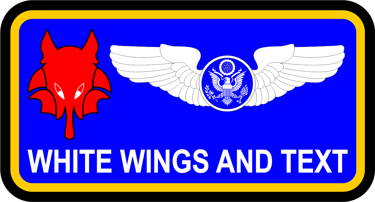 Andrews AFB 89 OG Name Tag - AF blue background, AF yellow border, leather backing, white wings and text with a red fox logo