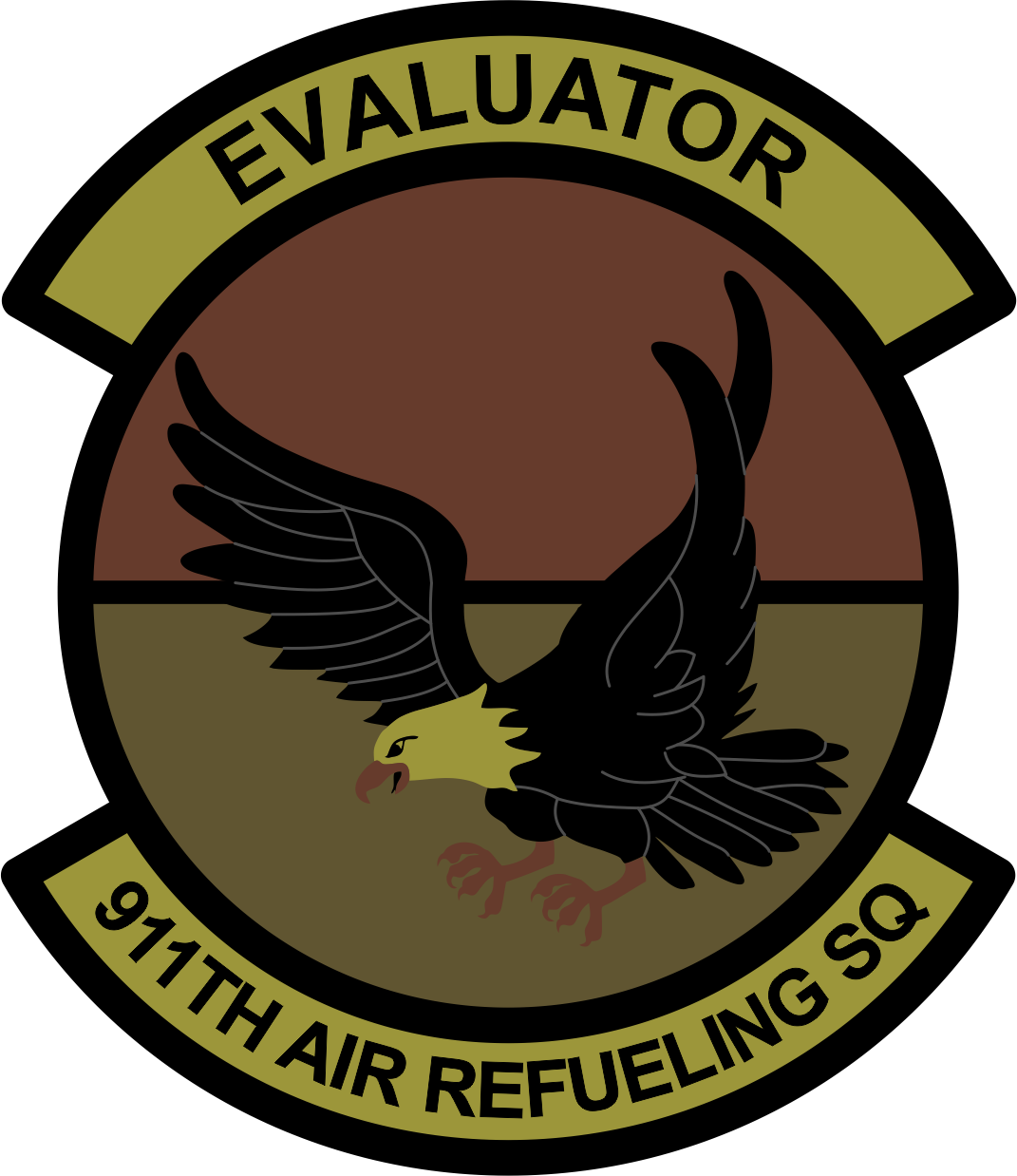 Black Border, Eagle & Text, Top Half Brown Background, Bottom Half Olive Drab, Black Line Across The Middle