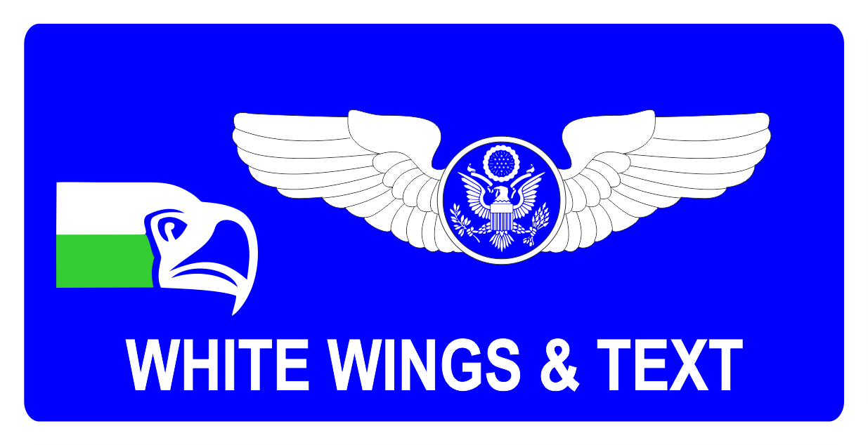 Fairchild AFB 92 ARW Seahawk Name Tag- AF blue background, white border, white wings and text with green, white and blue seahawk design.