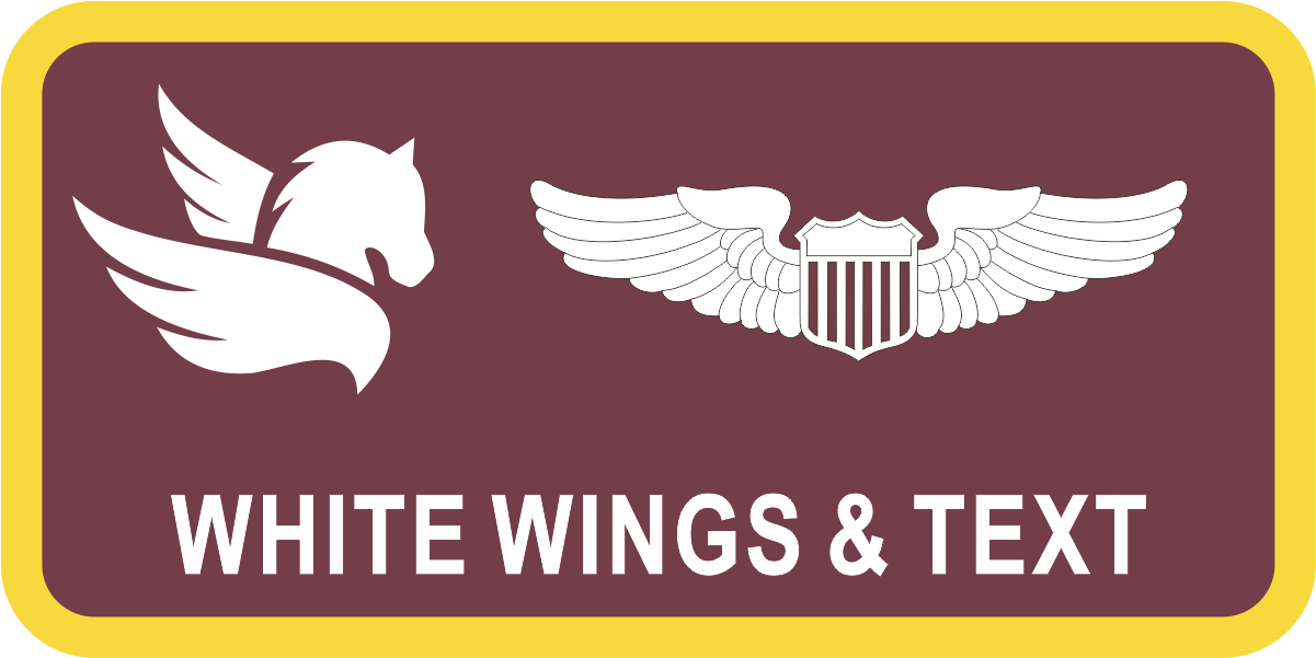 Altus AFB Class PIQ 23-04 Name Tag - Maroon Background, Yellow Border, White Wings & Text, White Pegasus Logo